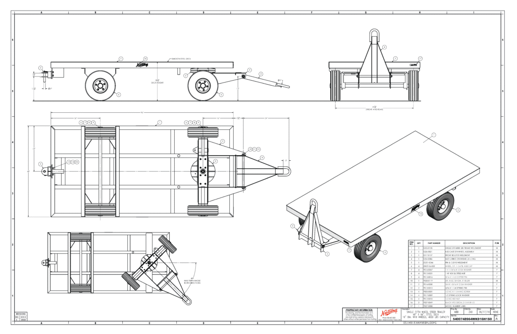 Our material handling carts and trailers are designed and manufactured to optimize the workflow of your material handling operations and are tailored to the unique functions of your facility. Features like locking mechanisms, quad steering, heavy-duty material design, and casters that can handle rough terrain or glide across smooth surfaces ensure your carts and trailers do everything you need them to do and nothing that you don’t. Unlike standard material handling carts, our custom-designed carts are not mass-produced. Instead, our carts and trailers are made-to-order based on the specific needs of your material handling operation.