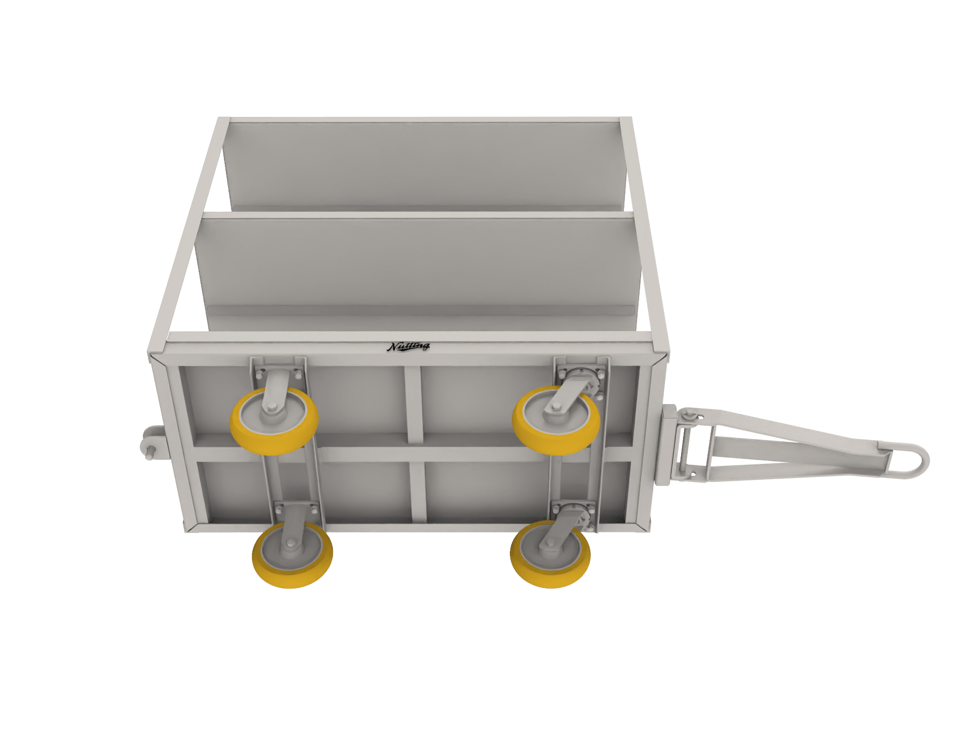 This towable cart is built to facilitate easy and reliable transportation of goods within industrial and commercial settings.